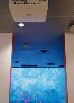 A vertical NEC projector shows lake Þingvallavatn, Iceland´s largest natural lake. By interacting with the exhibit guests can learn about the lake’s rich and diverse biology.