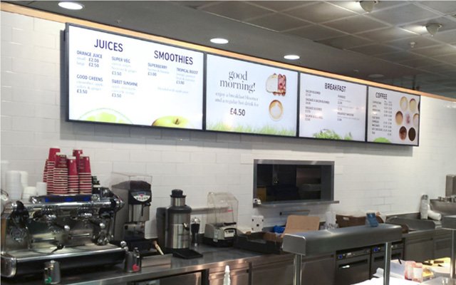 Evaluating the benefits of digitising its menu boards, the John Lewis Partnership instructed Digital Media Projects Ltd (DMP), a technology company based in Harrogate to create a digital signage concept for its flagship Oxford Street store. Replacing typed A3 boards, diners visiting The Place to Eat restaurant, the Brasserie, the Bistro and the Coffee Shop now make their selection from 25 x 23” EX231W and two x 46” P461 NEC screens positioned alongside each serving section. The signage on these screens, powered by DMP’s digital signage solution can be created, amended and deployed from anywhere with an internet connection using their unique web-based Creator and Content Management System (CMS).