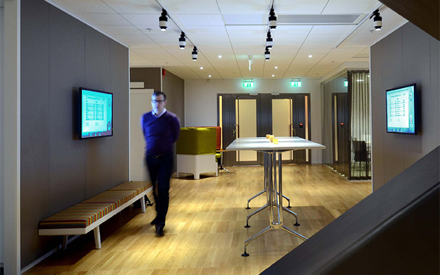 NEC was assigned the task of creating an energy-ef!cient audio visual infrastructure at United Spaces along with Adeste, supplier of PRINT and VISION solutions, and Lexter, supplier of sound design in public environments. The integrated solutions would, among other things, contribute to a better working environment, involving users in United Spaces’ environmental goals and enhancing the modern feeling that permeates the premises.