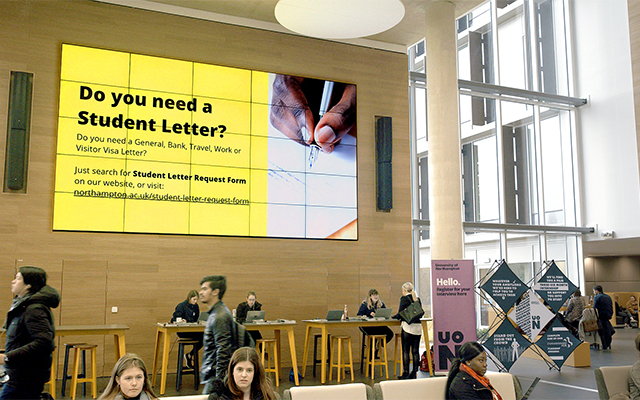 Autumn 2011 saw the opening of a new £15m student hub at Edge Hill University in Ormskirk. In keeping with Edge Hill’s proven commitment to sustainable development, the energy-efficient building with eco-friendly features required kitting out with similar attention to its IT installations. The nine screen video wall delivers 138 inches of awesome high definition student entertainment to complement its ultra-modern environment.