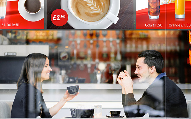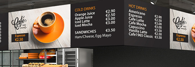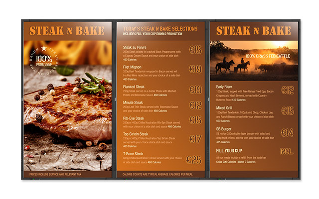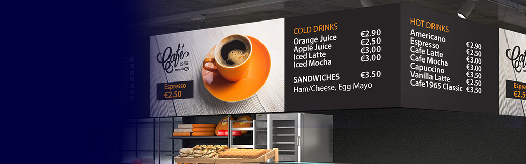 Tabule s digitálními nabídkami, které jsou nákladově efektivní v porovnání s tisknutými nabídkami, zobrazují marketingové zprávy a poskytují flexibilitu v rámci úpravy cen, propagace nebo reklamy, a to okamžitě v závislosti na dostupnosti, denní době nebo sezónního charakteru - místní nebo centrální v rámci celé sítě výdejen.
