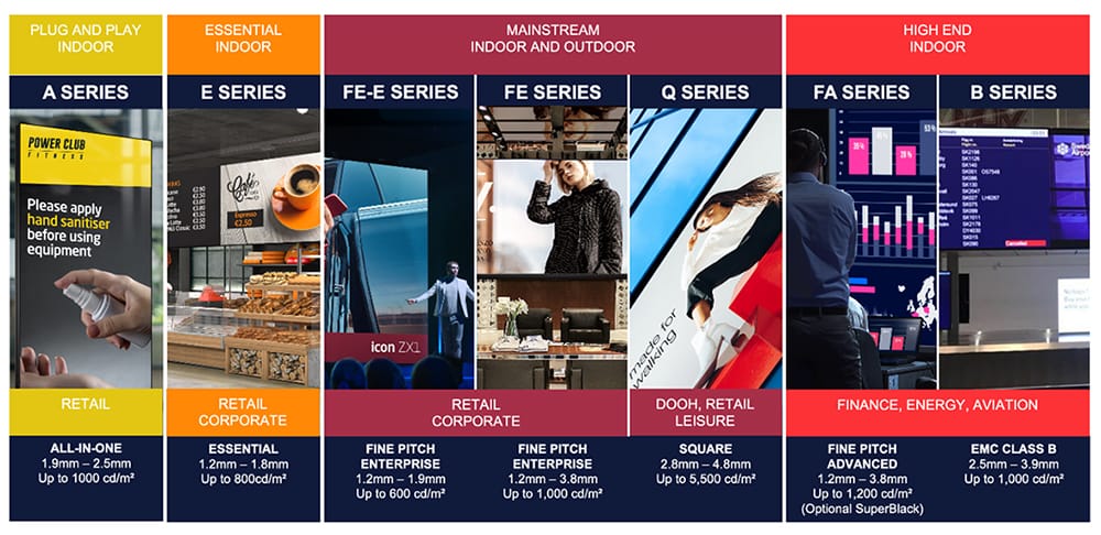 Our broadest ever range of pre-bundled and customisable LED solutions cater for any application requiring any display size and shape, plus a wide choice of pixel pitches. And with an array of features tailored to specific environments and corresponding to budget parameters; we really can accommodate pretty much every application requirement!