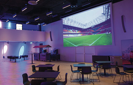The mix of videowall, projection and LED technology installed within the new stadium extension enables Amsterdam Arena to offer flexible spaces which complement the activities in the stadium itself through high quality images, messaging and way-finding information. Through promotion of ancillary activities, merchandise and catering provision, the visual media are supporting additional revenue generation.