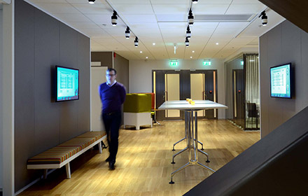 NEC was assigned the task of creating an energy-ef!cient audio visual infrastructure at United Spaces along with Adeste, supplier of PRINT and VISION solutions, and Lexter, supplier of sound design in public environments. The integrated solutions would, among other things, contribute to a better working environment, involving users in United Spaces’ environmental goals and enhancing the modern feeling that permeates the premises.
