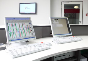 MultiSync® LCD195VXM+ units are used at the staff workstations. With their elegant appearance, they harmonise outstandinglywell with the LCD public displays. Their low energy consumption makes them ideally suited for use with so-called “thin clients”. These are workstations which obtain their data and applications via a network from a computer centre. The main advantages of this technology are independence from fixed workstations and low operating and energy costs. A thin client needs a power of only 5 watts. The monitorsconnected to them should therefore also be energy-efficient.