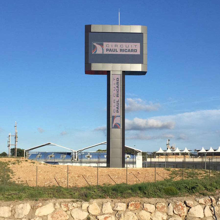 Circuit Paul Ricard in Le Castellet, South France, was modernized to host Formula 1 races again. Live broadcasts shall be shown on the centrally located LED displays. Furthermore, the screens need to display advertising and racing information. In Le Castellet the LED displays face a particularly large number of hours of sunshine and must be prepared for it.