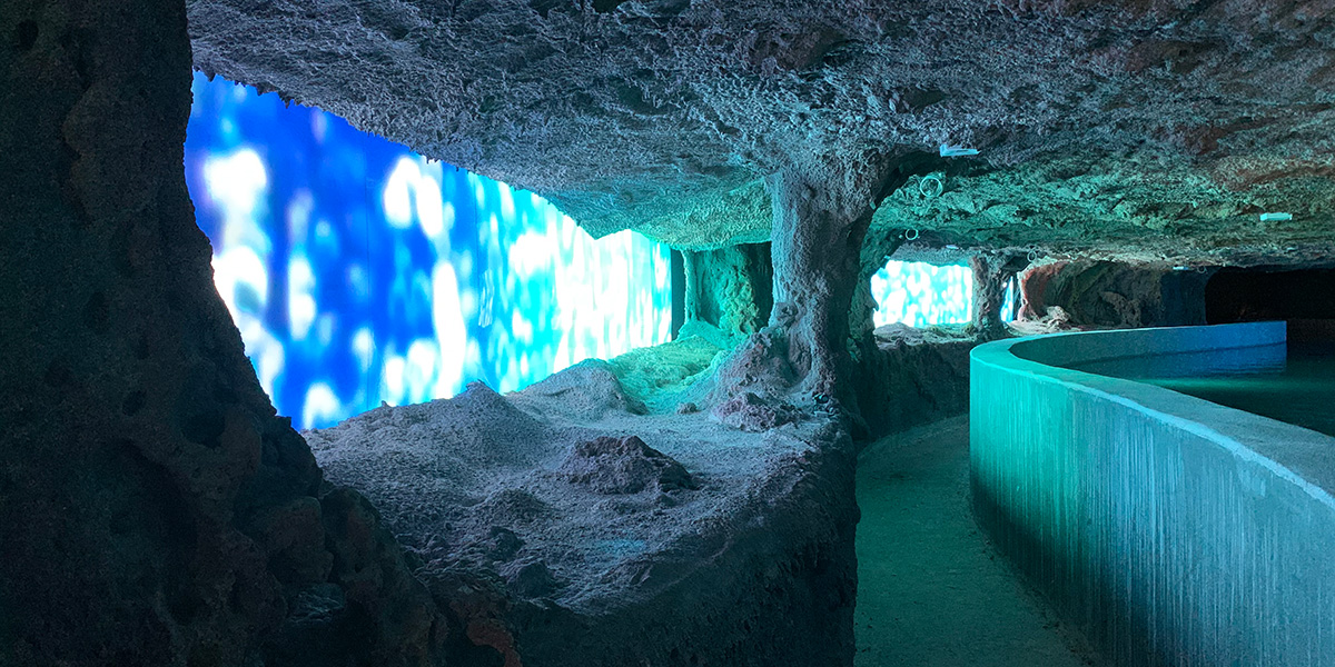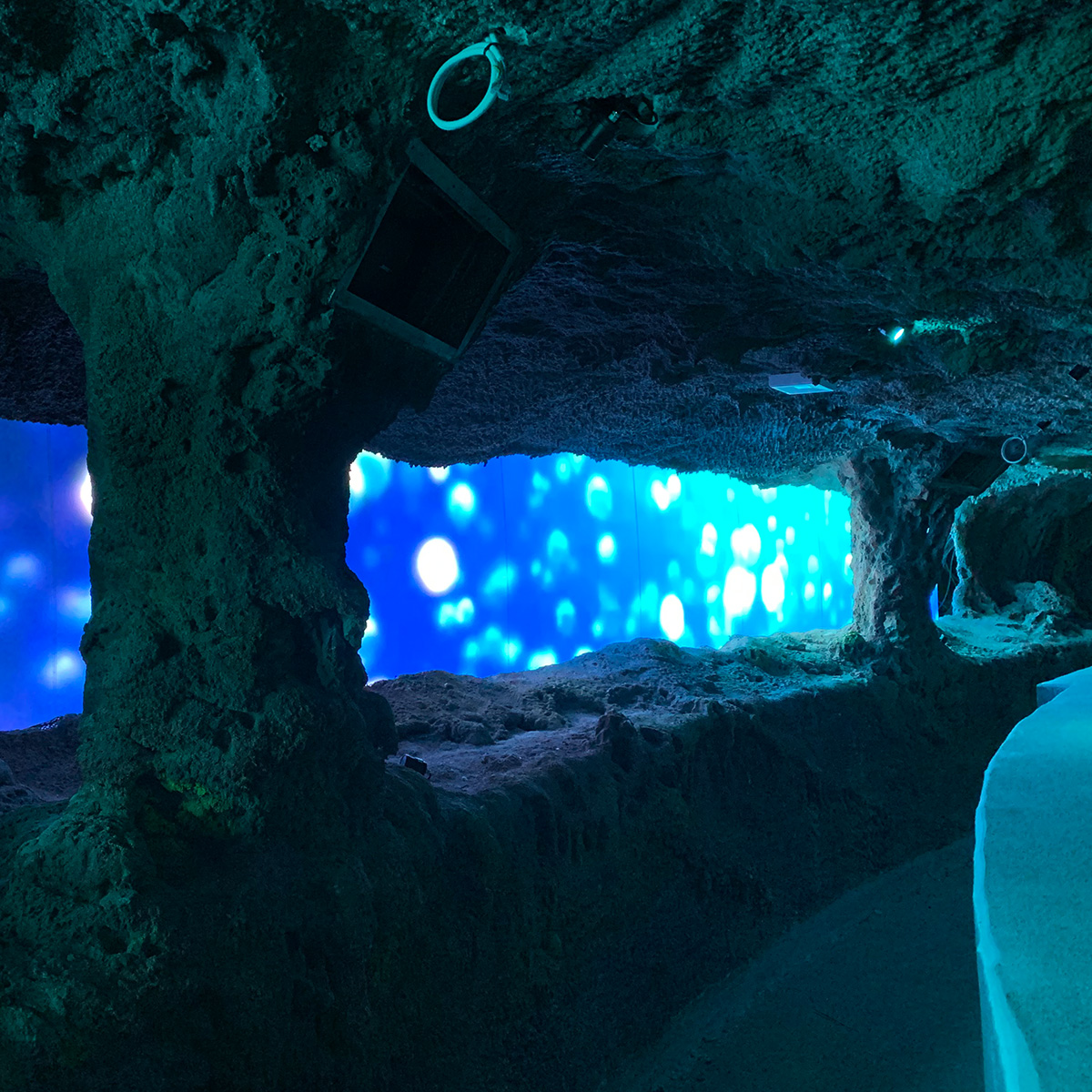 We upgraded our S[quadrat] Ocean SO[6.25 SMD] NT to 48V technology and equipped the LEDs with a nano coating. The LED display is therefore corrosion-free. The integration into the artificial rock was carried out with a specially manufactured substructure. Customised diffuser plates in front of the display surface create the underwater effect.