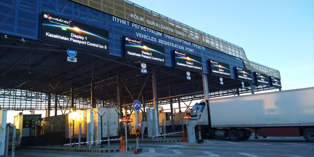 To ensure that freight transports between Kazakhstan and China can be carried out as smoothly, quickly and flexibly as possible, Eurotransit-KTC planned to set up a cross-border terminal in Altynkol. This terminal needs to have direct access to the Chinese standard gauge rail network as well as to the Kazakhstan wide gauge rail network in order to be able to handle all daily business as quickly as possible. The project required displays that are able to operate around the clock for outdoor traffic management in the area of a border terminal and for the management of terminal operations. These displays must be able to operate around the clock.