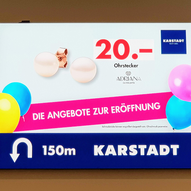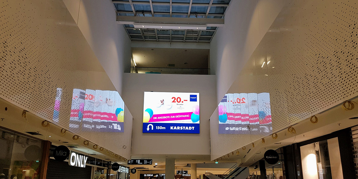 The two LED walls in the shop window and in the shopping centre itself, which we installed together with NEC, are real eye-catchers in the almost 8000 m² Karstadt store.