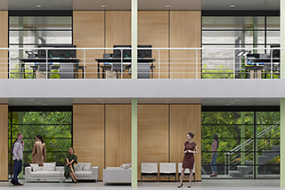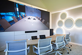 The office becomes a desirable destination, a place for social interactions. Multiple, purpose-designed modular workspaces, equipped for any size and type of meeting, available to reserve as needed.